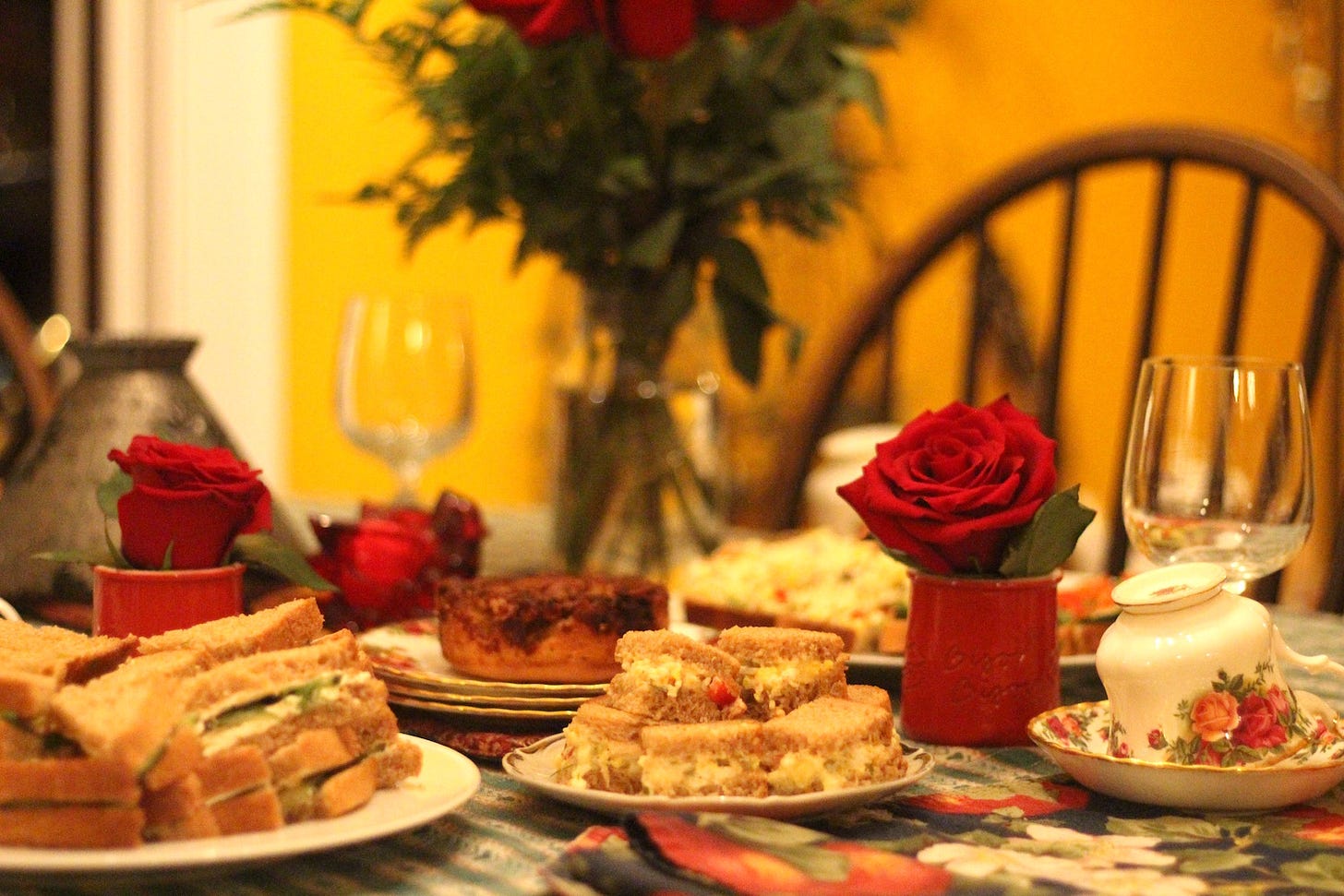 And someone sends me roses, as if they know my Valentine’s tea table will soon be wanting them.